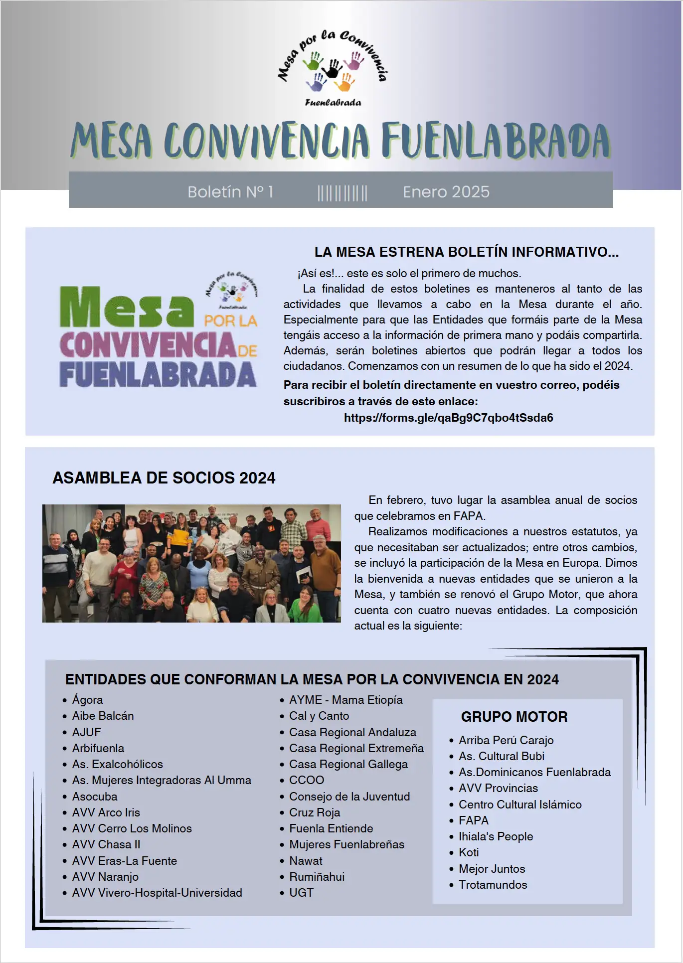 Desde la Mesa por la Convivencia, queremos dar un paso más para manteneros informados sobre nuestras actividades, proyectos y logros a lo largo del año. Este boletín nace con el propósito de compartir, de primera mano, el trabajo que realizamos junto a las entidades que forman parte de la Mesa, así como con la comunidad en general.