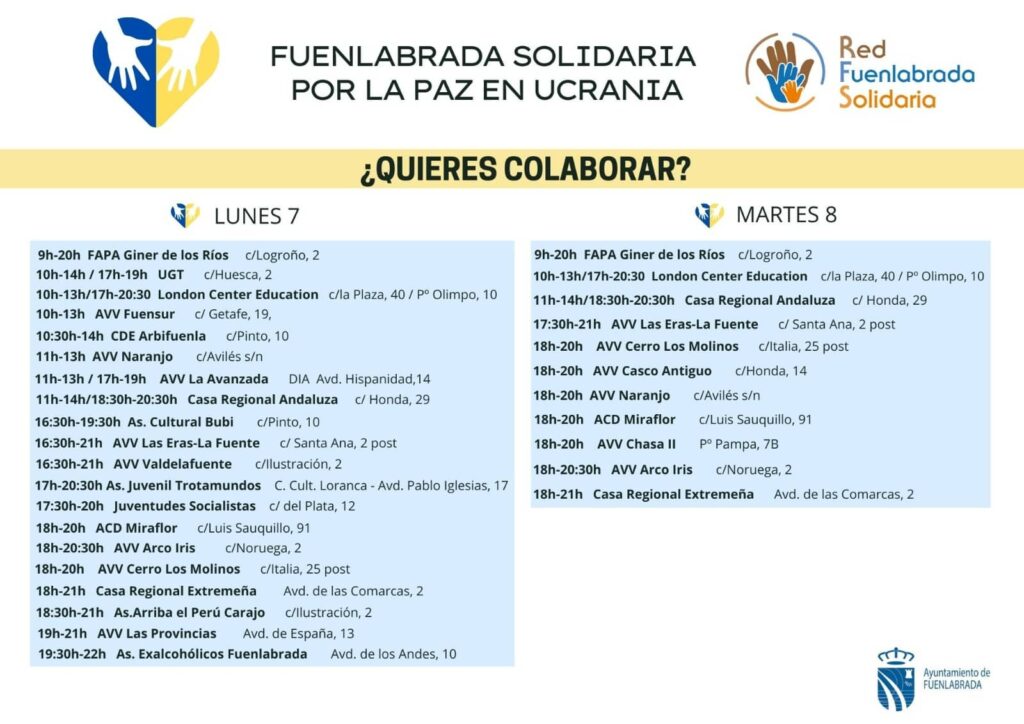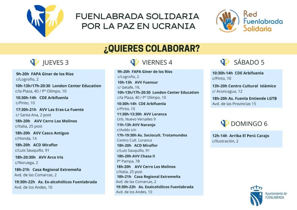 Este sábado hay convocada una concentración silenciosa por parte de la Mesa por la Convivencia de Fuenlabrada junto con el Ayuntamiento de Fuenlabrada para mostrar nuestro apoyo y solidaridad hacia el pueblo ucraniano debido a la agresión que está sufriendo por parte de la Federación rusa.