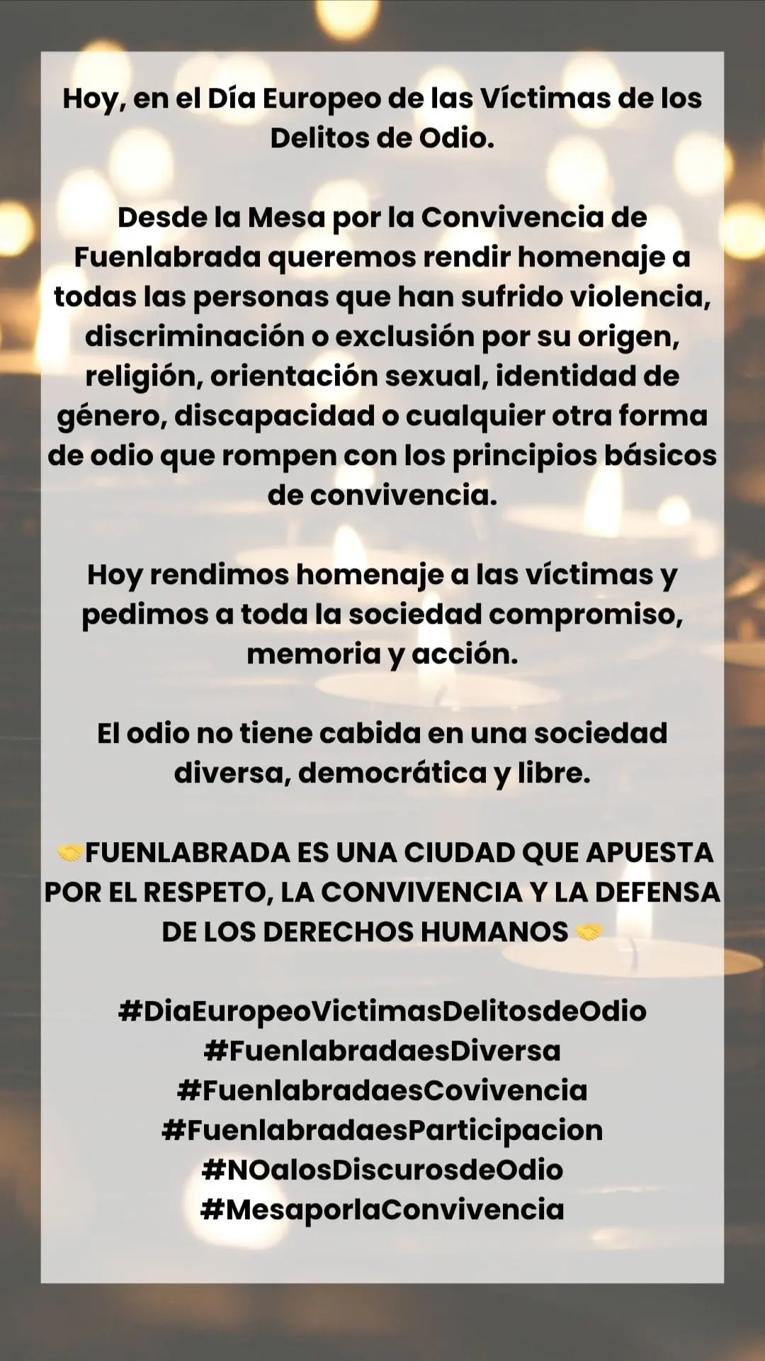 #DiaEuropeoVictimasDelitosdeOdio #FuenlabradaesDiversa #NoALosDiscursosdeOdio #MesaporlaConvivencia #DerechosHumanos